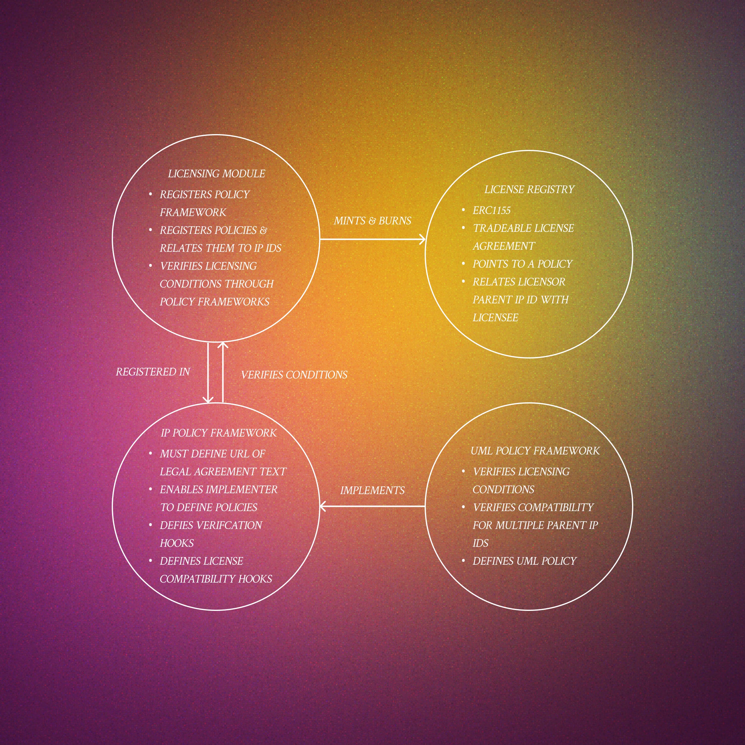 The next concept we should discuss is on-chain intellectual property (IP) that is standardized into a mintable license. Story Protocol attempts to address the problem of representing the necessary data corresponding to different types of media, which often adhere to unique and sometimes conflicting standards. For instance, licensing music has historically followed a different standard than licensing texts, and scientific journal texts differ from literary texts in terms of copyright, Library of Congress numbers, ISBN numbers, and music catalog numbers, among other aspects. So, let’s generally consider all these elements under the umbrella of IP minted on-chain.