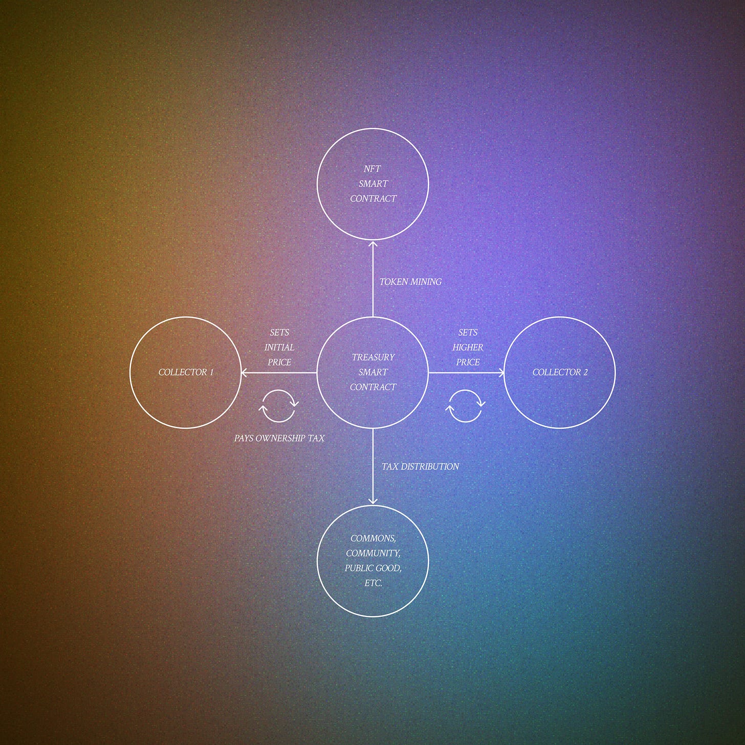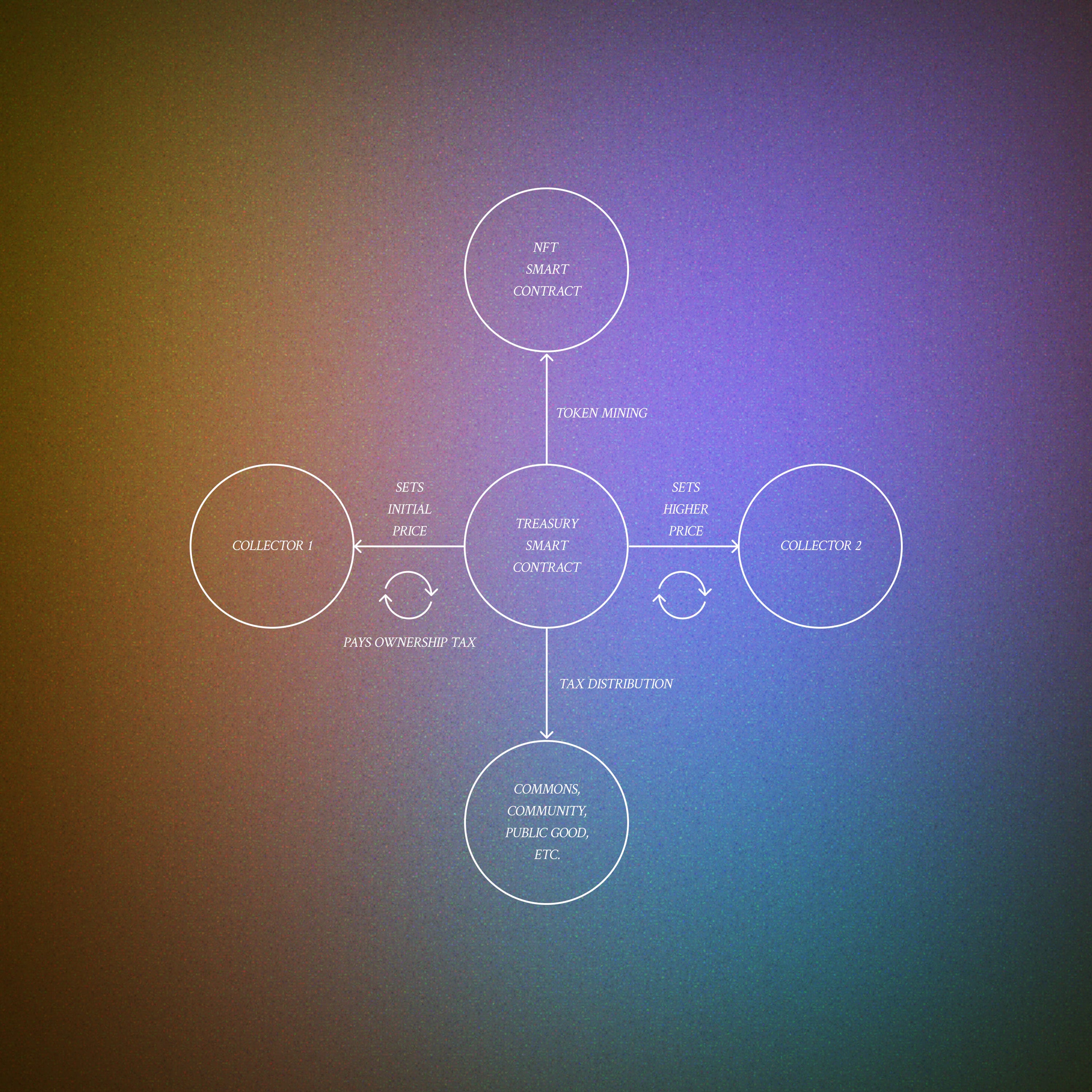 We imagine the Collector DAO receives the money from the sale. There’s also a tax component—the titular Harberger tax—which involves a percentage of the value going to another party, in this case the Creator DAO.