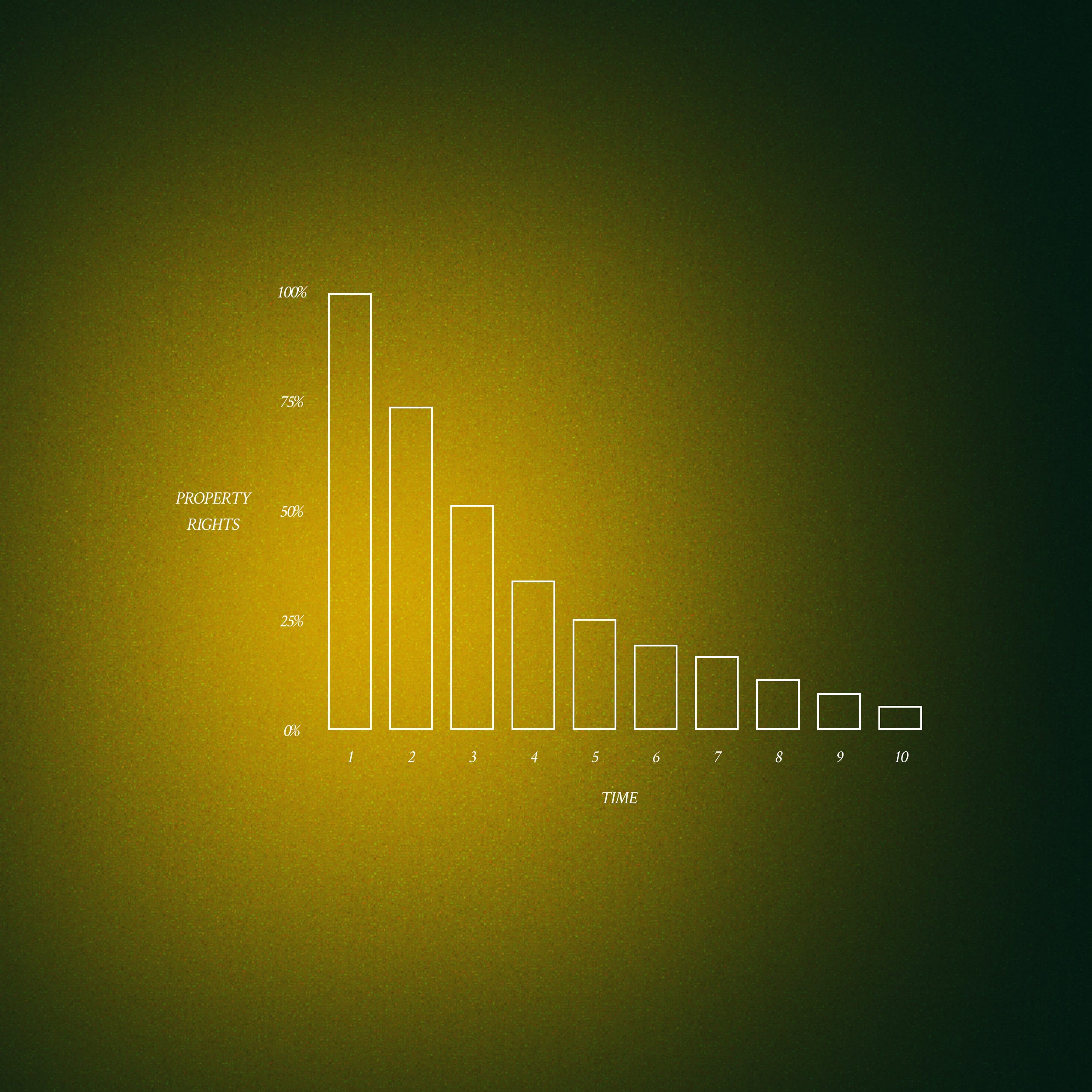 Most licenses currently are perpetual; you buy it once and you have the license indefinitely, or sometimes there are terms that modify this. However, a depreciating license would mean that when one buys it, they initially own 100% of the license, but that ownership gradually diminishes over time. Incorporating a depreciating PCO license, the Creator DAO would start to receive back an increasing share of the ownership. Collectors are incentivized to actively promote and utilize the license, but they don’t receive perpetual revenue from it—it completely degrades over time, so eventually the creators reclaim full ownership of the IP.