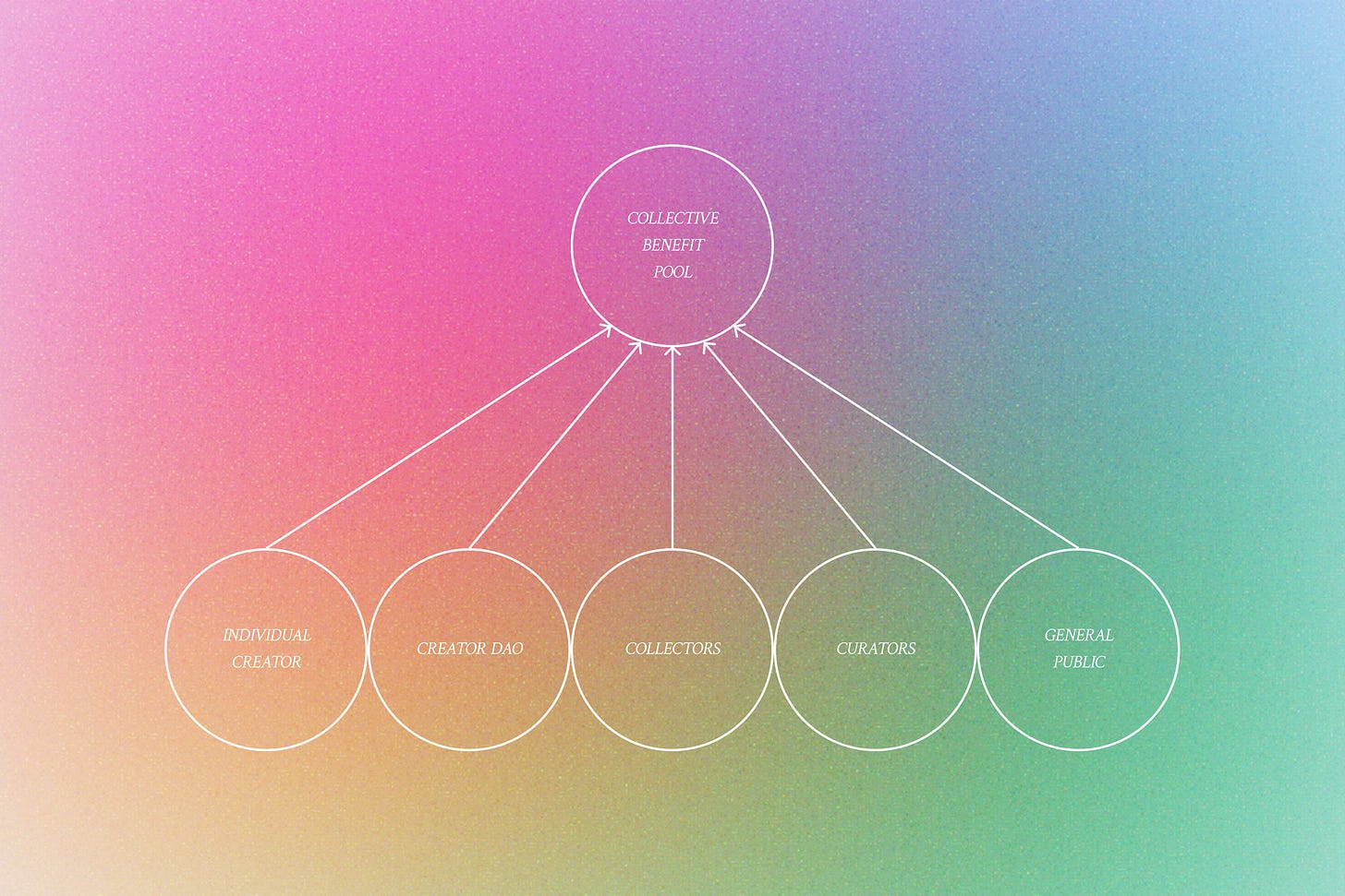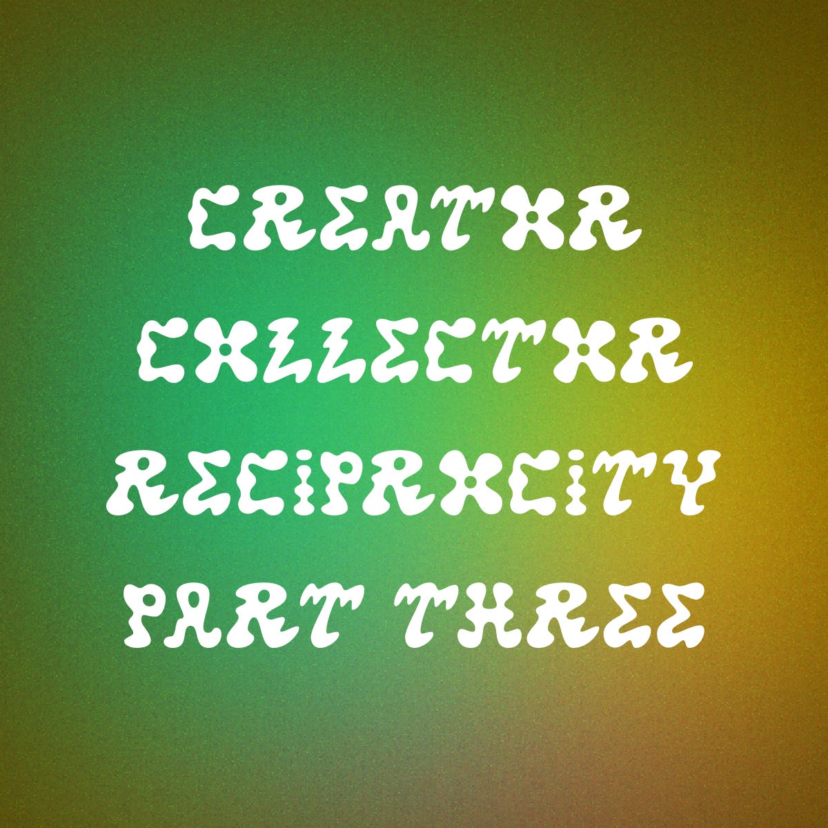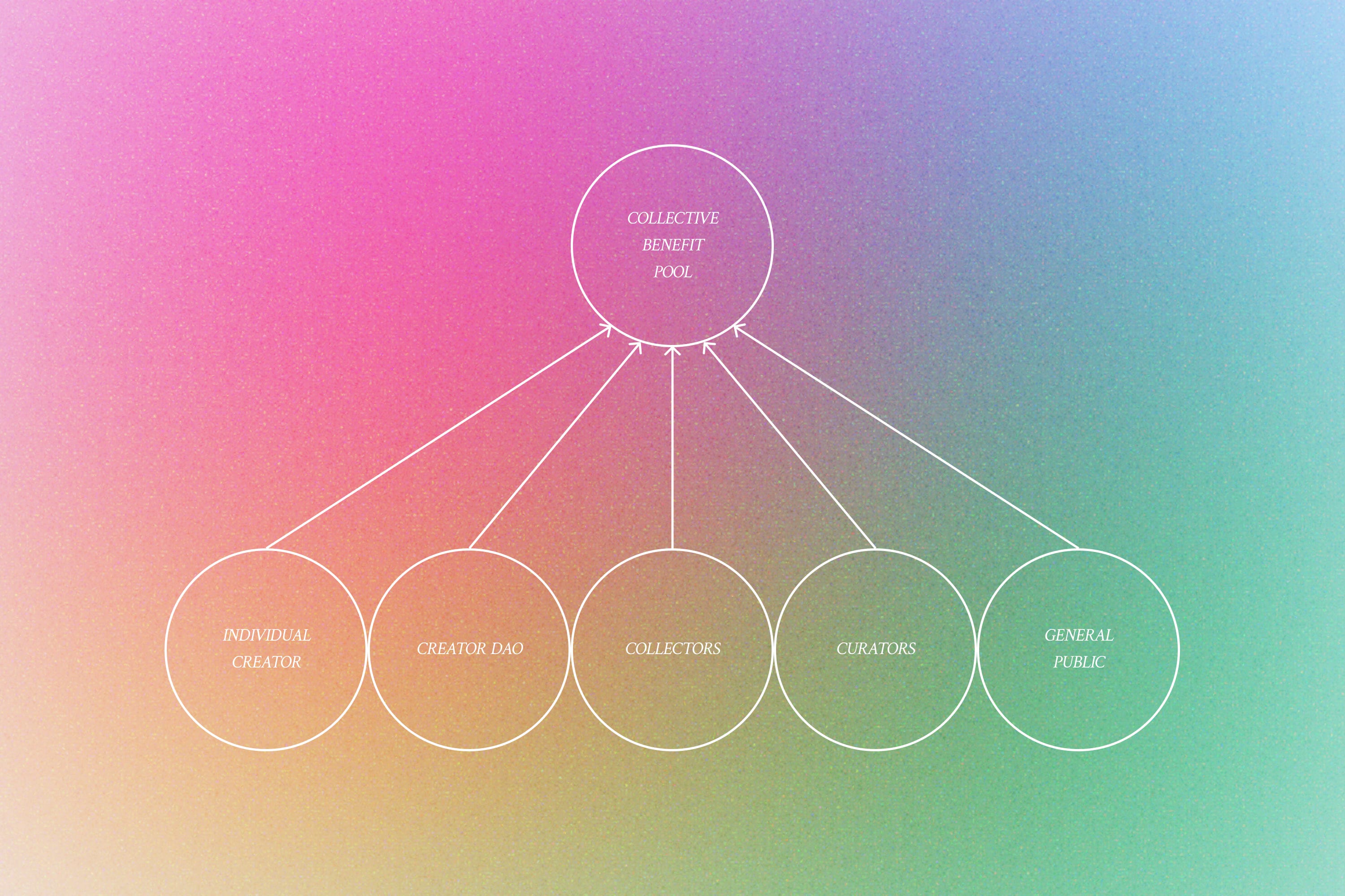 To be clear, we’re not suggesting that the market is fundamentally extractive. Rather, the market creates a disequilibrium by emphasizing economic exchange at the expense of cultural exchange motivated by any other agenda. The potential for decentralized entities to form and engage in reciprocal, decentralized cultural production could prompt creators to take on a more proactive role in shaping new markets with novel idiosyncratic intentions. Likewise, collectors could be tasked with greater responsibilities to actively participate in feedback loops that inform cultural priorities and directions beyond the unapologetically degenerate. This would be a subtle but significant departure from a model where fetishistic consumer purchases signal a demand for more of the same, leading to destructive and unsustainable practices. From this high-level abstract reverie, we might begin to explore the idea of shared responsibility and accountability in the culture that is produced.