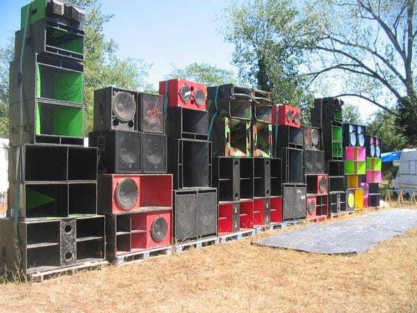 I was very fascinated in building giant sound systems like that when I was young. I would go to concerts of music that I was not particularly interested in just because — especially in the electronic music culture — the sound systems become monuments to sound. They would often incorporate exotic fidelities of speakers — very large subwoofers and very finely tuned tweeters — where you’re able to experience a sonic architecture unlike anything that is possible anywhere else in this world. I’ve been to many concerts in my life seeking out that extreme range of fidelity.