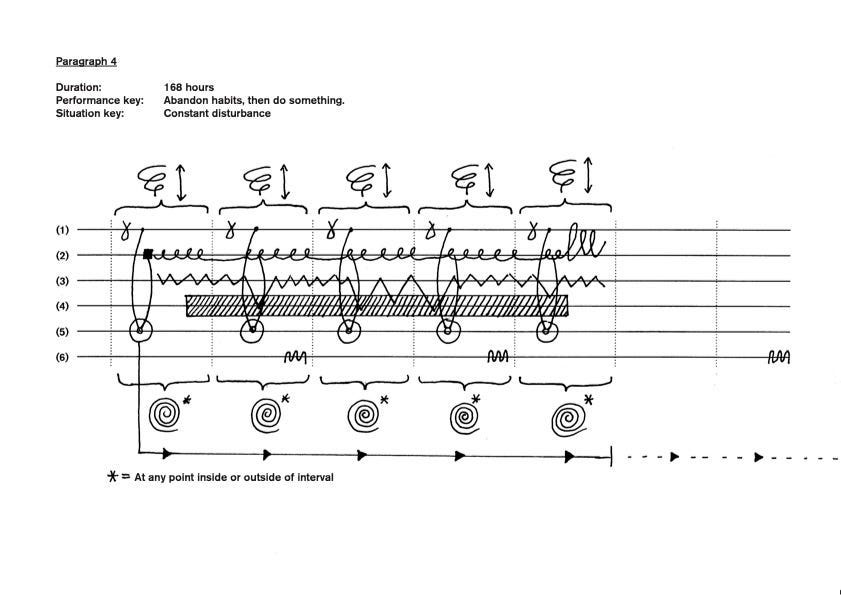 First of all, let me say yes to composing the negative spaces. Second, let me ask in the same breath, how do we compose this way? I would encourage us to refrain from answering that and offer that perhaps there’s a second part to this project. The first part is the composition, the notation, which we can perform verbally, theoretically, orally, and through the transcription, but then there will be the performance. How we choose to craft those holes in the making, in the praxis, in the action, will be important. I hope we can find a way to develop a manner of editing these texts together that does not feel like work, does not feel like a distraction, but feels like the chamber plays you mentioned. I want to swim around in the sammensurium with you and figure out how we perform these notations while remaining light and joyous.