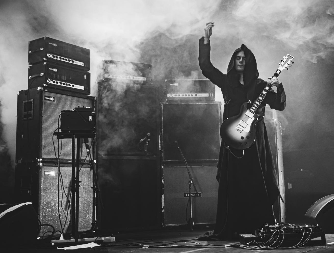 Do you know the band Sunn O)))? It’s pronounced sun and is an homage to the bands favorite amplifier company of the same name. They’re a heavy, dark, doomy drone metal band. I’ve seen them play many times. I find their music, quite honestly, to be a little boring, but their presentation is so incredible. There’s usually three to five guitarists circling around a pillar of giant amplifiers, the biggest amplifiers I’ve ever seen. Even though they hardly move there’s a spectacle of performance to it; they wear heavy robes and there’s a dark occult feeling. It’s a little cheesy too: fog machines and purple lights with this ominous, doom-laden guitar music. It’s like they’re worshiping, or sacrificing, to the gods of sound, or electricity itself amplified into an entity. It’s a very powerful experience to be exposed to. It’s visceral. It affects you in the gut. It influences your bodily organs; you have a corporeal reaction to music when it’s presented that way.